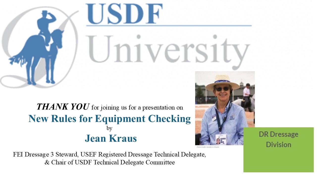 Jean Kraus, Chair of the USDF Technical Delegate Committee, Registered Technical Delegate and FEI L3 Steward, discusses the latest rules for tack and equipment in dressage competitions.